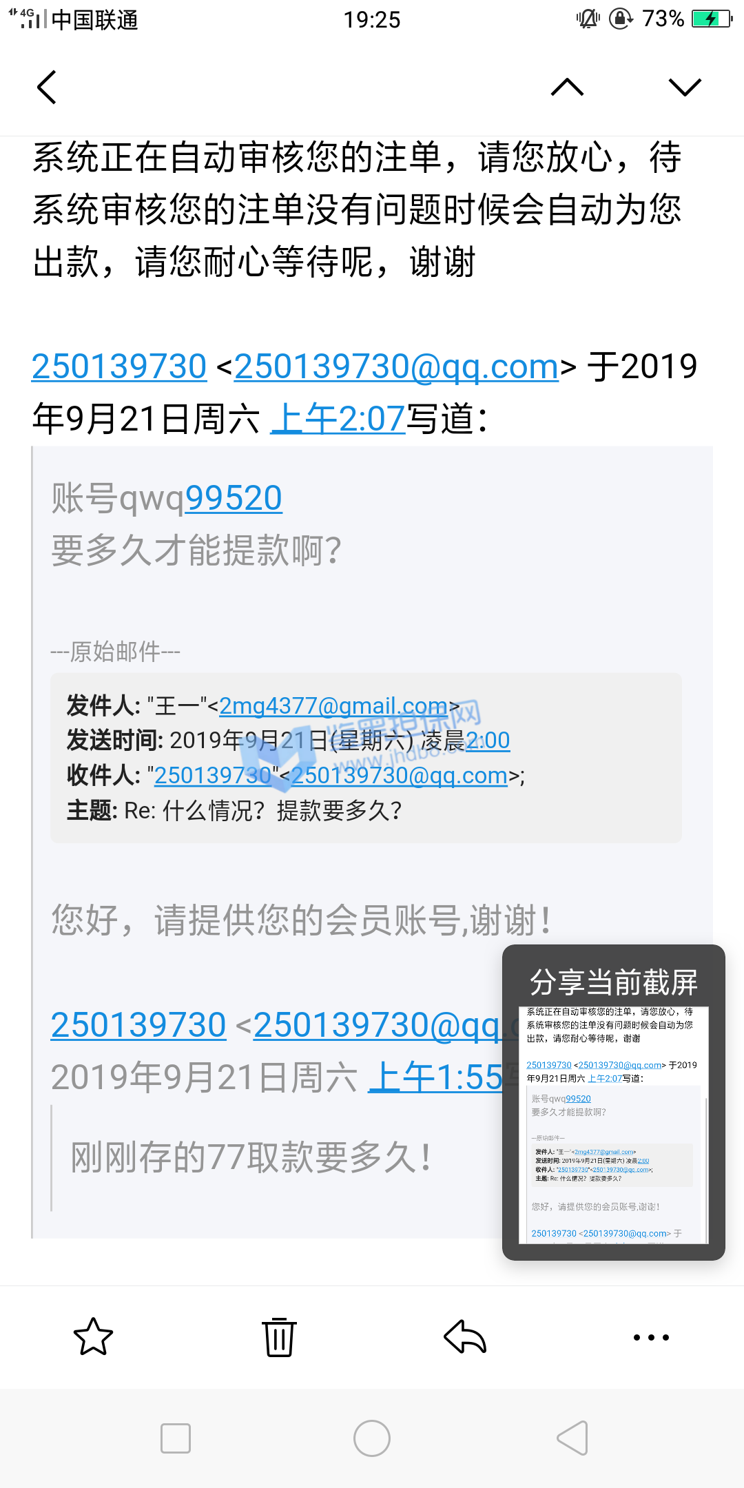 提款3868就不到账 一问说例行审核,我觉得绝对不是这么简单,一个公司稍微赢点就审核,我觉得多少有点问题,然后让提交身份证正反面、手持身份证、户口本,没有办法 虽然不愿意,但是我只能当时就立即提供了,提供后说不清晰 我继续拍,我说实在不行 要不要把社保卡什么的都发给你来证明一下自己(真是让人头疼 反正提供了户口本 翻户口本的时候看到其他东西 想想不如多给你提供一些东西 可好?),反正后来又拍了两次后 说资料合格全了,却说还要等十天(七个工作日),我就搞不懂了 你要的是审核什么,本来就是要提供的是资料 已经全了给你,也说资料全了,却还要等那么久,这就是借故拖延的一种,其实很多人接收不了审核,因为属于公司实力和底气的一种,没有办法情况下的审核可以接受,因为正规TOUZHU,但是审核效率上能不能加强呢?何况很多公司根本不谈节假日 如大公司365九州等人家不乱审核,即使处理重要问题也就是一两个工作日。 不出所料卡完审核日期 钱连本金全部被黑,无耻至极! 热博该公司多网站搞广告 曾经因为走地皇名声搞坏了 改名热博 曾经广告主打专业体育为主,该后台老板旗下还有同L城、乐T堂、bi威、竞BO 都是,现在经常审核有黑款行为,在热博存款二百 提款3868元被黑。只玩了体育 赢点就被审核,说我对打套利,我搞不懂了 如何套利 另外问违规注单,让他们提供却没有,只说违规 就一句话。 知道正常黑款公司从开始就是这个步骤 先让你提供身份资料 然后提供了 卡完审核日期(因为根本决心黑款拖完时间再说)然后就黑款。这家比之前的UC体育还无耻 UC体育黑款还能退本金 这家连本带利全部黑了。真正土庄,还有这个系统大家要注意 之前口碑还可以的几家都已经有黑款行为了,比如B威,刚开始还信誉,后来听说被海南工作室搞惨了,然后现在就一直有审核黑款情况,包括乐T堂、同L城 竞博都是如此,一样的审核套路和黑钱行为,大家都要留心。而且该系列包括热博这些公司在玩BO联合该论坛骗会员 多次搞活动,投诉贴较多,该站管理根本不管会员利益,只知道收广告费,还黑会员 大家都要明智。