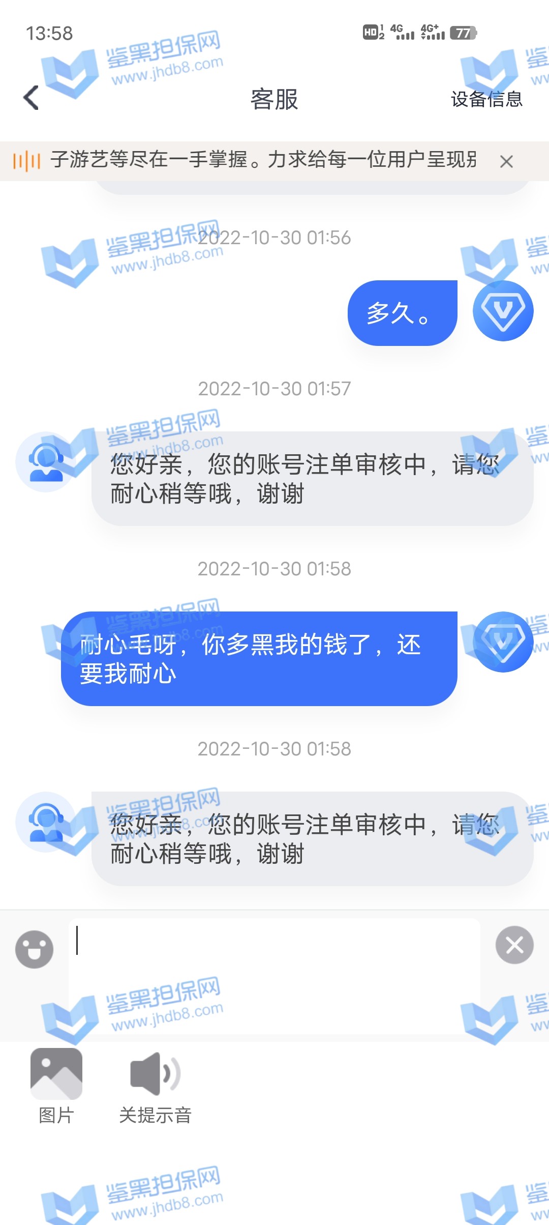 4.用户提交维权需为本人提交,若代替让人发布维权鉴黑担保网将拒绝受理;