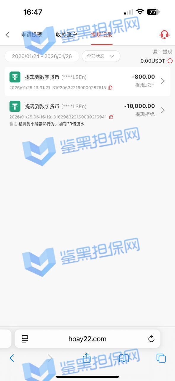 3、鉴黑担保网维权专员联系该平台相关负责人核实情况,针对重新完成高额流水才可以提款的问题进行交涉,追问福利彩金是否审核之后才派发时,对方回复“是的”,若出现其他账号是无法通过审核的,既然派发那么审核已过,所以现在的说辞不成立,可见是小金额存款盈利过万之后以罚流水让其输完为目的,存在黑款行为,还请广大玩家慎重选择平台游戏!!