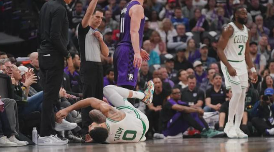 凯尔特人队再叫暂停,塔图姆失误,阿奴诺比快攻扣篮,尼克斯队领先9分,对绿军更糟糕的是塔图姆手捂着左脚踝,痛苦地倒在地板上。暂停后塔图姆被搀扶离场,随后坐上轮椅,布朗三分打铁,布伦森右翼三分命中,尼克斯队以116-104领先。布朗跑投打进,阿奴诺比突破扣篮,普理查德连追5分无济于事,凯尔特人队以113-121落败。
